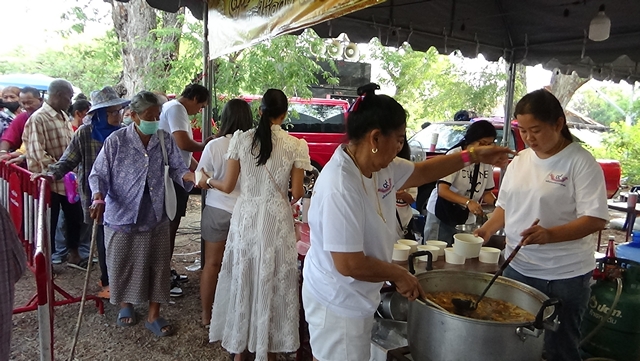 โดยในงานคุณแสงดาว คำเงินพร้อมครอบครัว ร้านสตาร์ซิลเวอร์ ส่งออก เขตสาธรและนาง สุภาพ กุดเพ็ชร เเม่ค้าข้าวเเกง จังหวัดสมุทรปราการ ร่วมทำโรงทาน กระเพาะปลา จำนวน 2,000 ชามและน้ำดื่ม แจกประชาชนที่เดินทางมารับข้าวสาร ได้กล่าวว่าปีนี้เรามาเป็นปีที่ 4 แล้วโดยปีมีเราตั้งเป้าแจกแค่ 1.200 ถ้วยแต่ไม่พอต้องทำถึง 1,800 ถ้วย ปีหน้ามาอีกตั้งเรทไว้ 3,000 ถ้วย