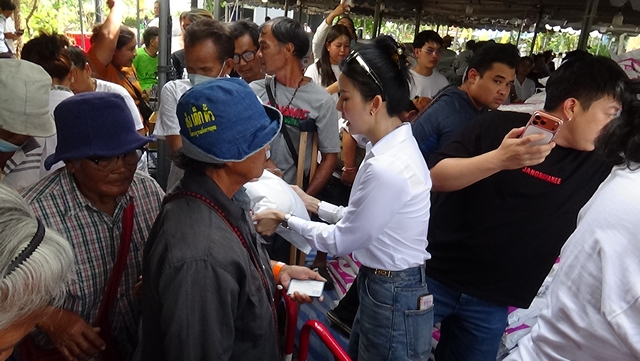 อ่างทอง- เนื่องแน่น จ๊ะนงผณีควงแฟนหนุ่ม”บิ๊ก อชิรพล”แจกข้าวสาร 4,000 ถุงแก่ผู้ยากไร้ในงานไหว้ครู