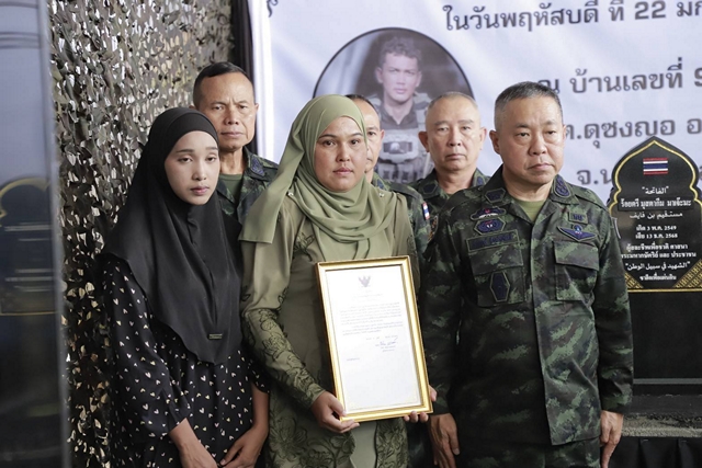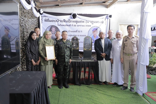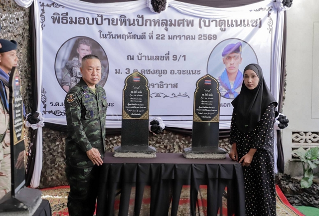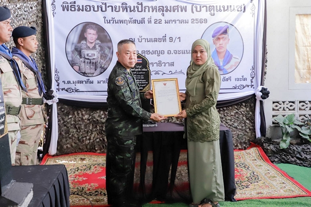 นราธิวาส-“เสนาธิการกองทัพบกลงพื้นที่นราธิวาส มอบ ‘บาตูแนแซ’ ป้ายหินปักหลุมฝังศพตามวิถีอิสลาม เพื่อจารึกวีรกรรมและเชิดชูเกียรติ 2 วีรชนผู้กล้าแห่งดุซงญอ”