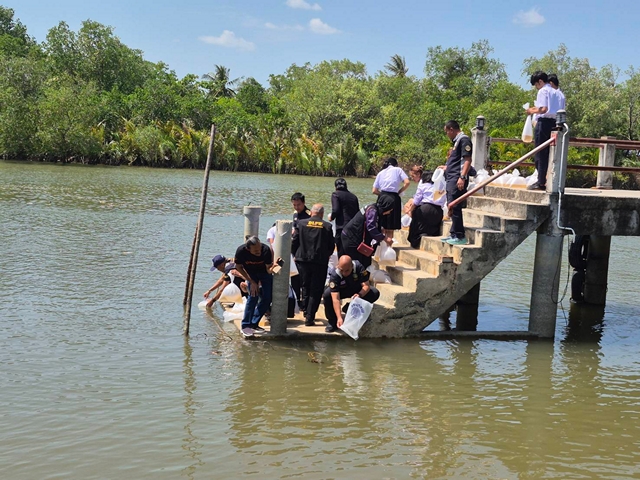 นอกจากการเติมเต็มองค์ความรู้แล้ว ไฮไลท์สำคัญของกิจกรรมคือการร่วมกัน “ปล่อยพันธุ์สัตว์น้ำลงสู่ทะเล” เพื่อเป็นการฟื้นฟูระบบนิเวศ โดยได้รับการสนับสนุนพันธุ์สัตว์น้ำจากศูนย์วิจัยและพัฒนาประมงทะเลสตูล ซึ่งถือเป็นสัญลักษณ์ของการเริ่มต้นร่วมกันดูแลรักษาผลประโยชน์ของชาติทางทะเลให้มีความอุดมสมบูรณ์และยั่งยืนสืบไป