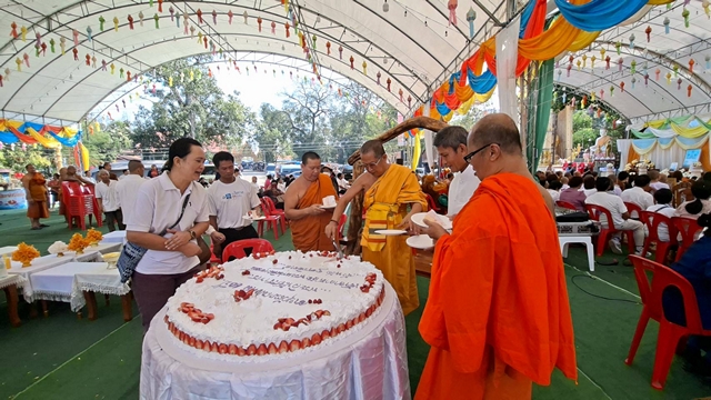 จากนั้นนายนายสันติ รังษิรุจิ ผู้ว่าฯจ.อุตรดิตถ์ เป็นประธานฝ่ายฆราวาส ประกอบพิธีทำบุญอายุวัฒนะมงคล ครบ 60 ปี 40 พรรษา พระเดชพระคุณ พระวินัยสาทร (ถวิล ถาวโร) เจ้าคณะจังหวัดอุตรดิตถ์ (ธรรมยุต) เจ้าอาวาสวัดพระแท่นศิลาอาสน์ พระอารามหลวง จังหวัดอุตรดิตถ์ ทั้งนี้ ,พระครูวาทีพัชรโสภณ (ราชันย์ อริโย) ผู้ช่วยเจ้าอาวาสพระอารามหลวง วัดมหาธาตุ จ.เพชรบูณร์ ประธานฝ่ายสงฆ์ ตักเค้ก แจกเค๊กครีมสตอเบอรี่ 100 ปอนด์ให้กับพุทธศาสนิกชน ศิษยานุศิษย์รับประทานเพื่อความเป็นสิริมงคล พระวินัยสาทร(ถวิล ถาวโร) ลำดับสมณศักดิ์ พ.ศ. 2550 เป็นพระครูสัญญาบัตร เจ้าอาวาสพระอารามหลวง ชั้นเอก ในราชทินนามที่ พระครูถาวรธรรมโกวิท 5 ธันวาคม พ.ศ. 2554 เป็น พระราชาคณะชั้นสามัญ ในราชทินนามที่ พระวินัยสาทร