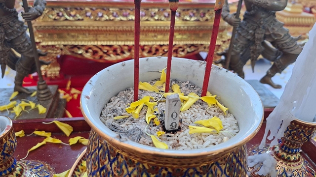หลังเสร็จพิธีทั้งบวงสรวงพระแท่นศิลาอาสน์ พิธีทำบุญอายุวัฒนะมงคล ครบ 60 ปี 40 พรรษา พระเดชพระคุณ พระวินัยสาทร (ถวิล ถาวโร) เจ้าคณะจังหวัดอุตรดิตถ์ (ธรรมยุต) เจ้าอาวาสวัดพระแท่นศิลาอาสน์ พระอารามหลวง ผู้ร่วมพิธีสังเกตตัวเลขจากธูปเสี่ยงทาย ที่จุดช่วงประกอบพิธีดังกล่าว 709 เพื่อนำมาเป็นเลขเสี่ยงโชค งวดวันที่ 1 ก.พ.69
