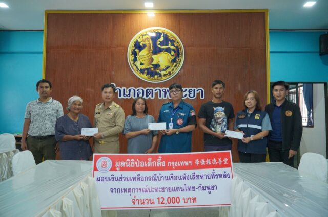 มูลนิธิป่อเต็กตึ๊ง จัดงบกว่า 6.5 แสนบาท เยียวยาผู้ได้รับผลกระทบจากเหตุความไม่สงบในพื้นที่ชายแดนไทย-กัมพูชา รอบที่ 2 รวม 5 จังหวัด มอบเงินช่วยเหลือทั้งกรณีทหารบาดเจ็บ สงเคราะห์กรณีบ้านพังเสียหาย และช่วยเหลือค่าฌาปนกิจแก่ญาติผู้เสียชีวิต