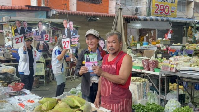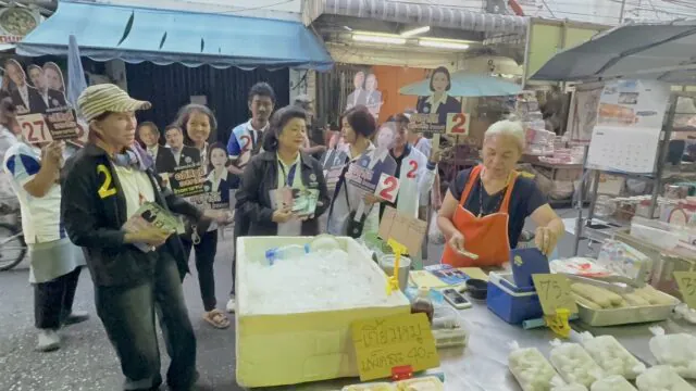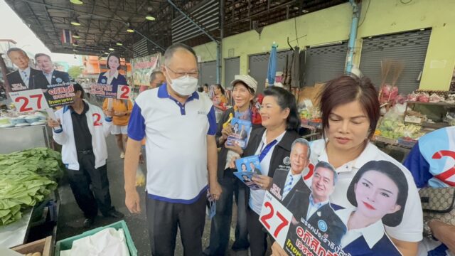 ‘ชลบุรี-รังสิมา‘ ควง ‘พจนารถ‘ ลุยตลาดเช้านาเกลือ ชี้ ปชป.ชูการเมืองสุจริต-เพิ่มเงินเดือนให้ผู้สูงอายุ