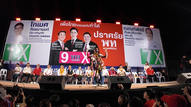 เพื่อไทยเปิดเวทีปราศรัยใหญ่ คนขอนแก่นร่วมฟังกว่า 30,000 คน ดร.เชน “ยศชนัน วงศ์สวัสดิ์” เดินพบประชาชนทั่วพื้นที่ รับกำลังใจ พวงมาลัย และคลื่นทะเลดาว ชูนโยบายล้างหนี้ ฟื้นเศรษฐกิจ ประกันรายได้เกษตรกร พร้อมประกาศสงครามยาเสพติด