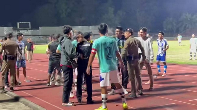 กระบี่-เดือด รุมยำกันกลางสนามบอล ฟุตบอล อบจ.กระบี่คัพ