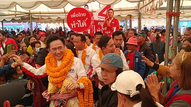 ยโสธร นาย ยศชนัน วงศ์สวัสดิ์ ลงพื้นที่ขอให้เลือกเพื่อไทยทั้งจังหวัด ชูนโยบายของพรรค เพื่อไทยทำได้