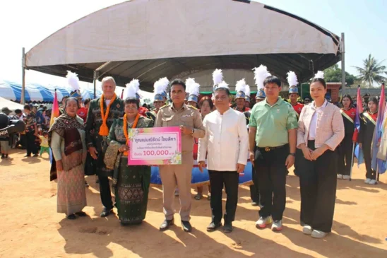 กาฬสินธุ์ฮือฮาครอบครัวฝรั่งใจป้ำแจกเงิน สร้อยคอทองคำ จ้างหมอลำ ใช้งบนับล้านฉลองเปิดร้านใหม่