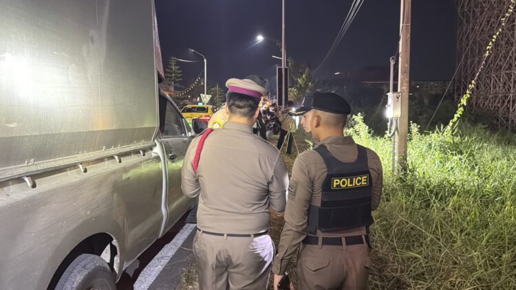 ตรวจสอบกระบะตู้ทึบด้านหลัง ยาเสพติด (ยาไอซ์) บรรทุกมาเต็มรถ เจ้าหน้าที่ตำรวจอยู่ระหว่างค้นหาผู้ขับขี่หลบหนี เข้าไปในป่า (เจ้าหน้าที่ตำรวจอยู่ระหว่างการค้นหา)