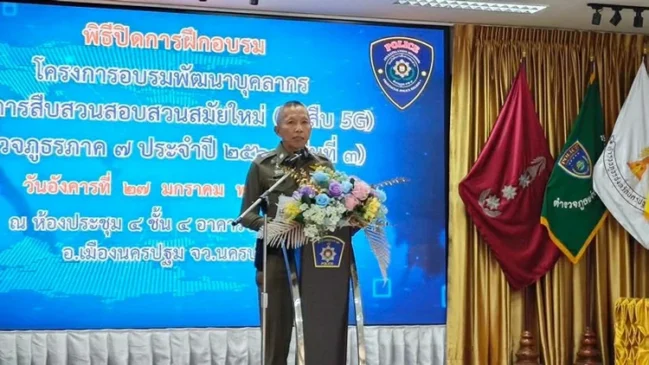 นครปฐม-ผู้บัญชาการตำรวจภูธรภาค 7 เป็นประธานในพิธีปิดการฝึกอบรมโครงการอบรมพัฒนาบุคลากรด้านการสืบสวนสอบสวนสมัยใหม่ (นักสืบ 5G) ตำรวจภูธรภาค 7