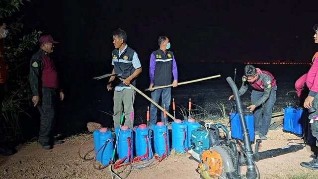 เมื่อช่วงเย็นที่ผ่านมา ปภ.จังหวัดนครนายก ระดมกำลังขอความร่วมมือ รถน้ำจากทุกอบต.ในจังหวัดนครนายก และกู้ภัยร่วมกตัญญจังหวัดนครนายกและกู้ภัยในพื้นที่ นำรถน้ำและกำลังพลมาช่วยกันสกัดไฟลามทุ่งที่กำลังรุกรามในพื้นที่ตำบลท่าเรือ อำเภอปากพลี จังหวัดนครนายก ที่กำลังขยายตัวและมีบางส่วนเริ่มใกล้เข้าสู่บ้านเรือนประชาชน โดยได้เรียกประชุมวางแผนงานที่ศาลาวัดลำบัวลอย โดยมีนายชานน วาสิกศิริ ผู้ว่าราชการจังหวัดนครนายก รองผู้ว่าราชการจังหวัดนครนายก ปภ.จังหวัดนครนายก นายอำเภอปากพลี ผู้กำกับสภ.ปากพลี พร้อมเจ้าหน้าที่ดับเพลิงจากหลายตำบลกู้ภัยในจังหวัดนครนายก และเจ้าหน้าที่จากกรมอุทยานแห่งชาติ สัตว์ป่าและพันธุ์พืช วางแผนงานและกระจายการทำงานในการควบคุมเพลิงที่กำลังขยายวงให้สามารถควบคุมได้