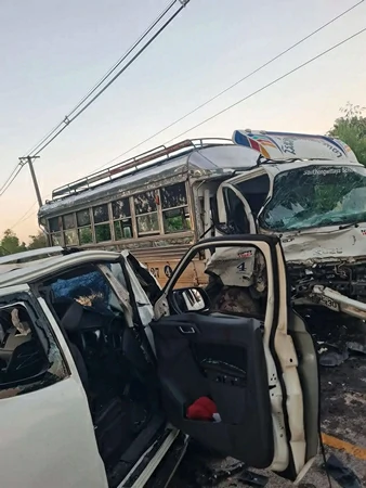 ร้อยเอ็ด…หวิดตายหมู่…กระบะชนประสานงารถรับส่งนักเรียน เจ็บระนาว