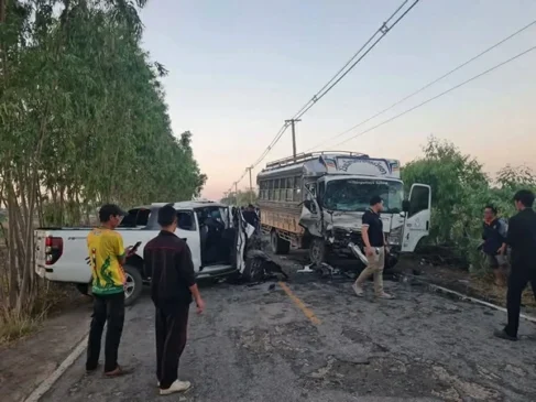ร้อยเอ็ด…หวิดตายหมู่…กระบะชนประสานงารถรับส่งนักเรียน เจ็บระนาว