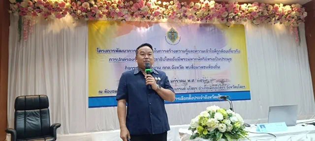 ตั้งสมาชิกสภาผู้แทนราษฎร และการออกเสียงประชามติ โดยนายชฎิลธร เหล่าทา หัวหน้ากลุ่มงานสืบสวนสอบ และพรรคการเมืองการเมือง เป็นผู้บรรยายให้ความรู้ซึ่ง มีสื่อมวลชนเข้าร่วมรับฟังประมาณ 50 คน