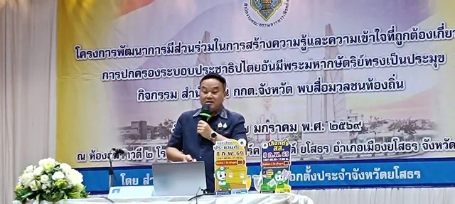 เมื่อวันที่ 27 ม.ค.69 เวลา 09.00น. ที่ห้องอมราวดี 2 โรงแรมเดอะกรีนปาร์คแกรนด์ จ.ยโสธร สำนักงาน กกต. จังหวัดยโสธรได้จัดโครงการ สำนักงาน กกต จังหวัดพบสื่อมวลชน เพื่อให้ความรู้และสร้างความเข้าใจแก่สื่อมวลชนท้องถิ่นเกี่ยวกับการเลือกตั้ง ส.ส.และการออกเสียงประชามติ ในวันเลือกตั้งที่จะมีขึ้นในวันที่ 8 ก.พ.69ที่จะถึงนี้ โดยมีนายธีรวุธ ไชยนนท์ ผู้อำนวยการสำนักงานคณะกรรมการการ เลือกตั้งประจำจังหวัดยโสธรเป็นวิทยากรบรรยาย พร้อมเชิญชวนชาวยโสธรออกไปใช้สิทธิ์ให้มากที่สุด