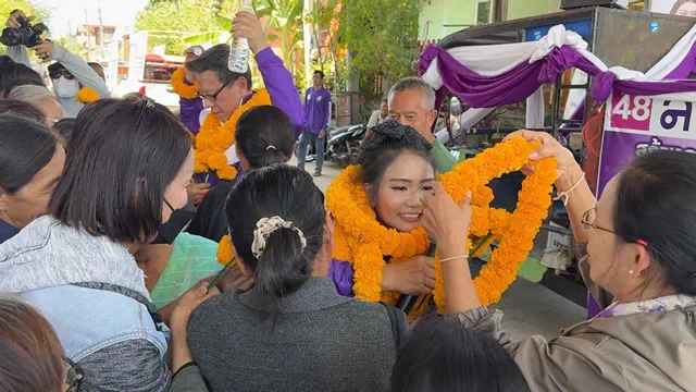 คุณหญิงสุดารัตน์ โฟนอิน ช่วยลูกพรรคสาวสวย อ้อนชาวบ้าน “คิดฮอดหลาย อยากไปกินตำบักหุ่งด้วย” “สุรเดชฯ” ประธานคณะกรรมการยุทธศาสตร์เศรษฐกิจ พรรคไทยสร้าง นำ “ณิชวดี” ผู้สมัคร สส.ขอนแก่น เขต 8 พรรคไทยสร้างไทย ขึ้นรถอีแต๋นหาเสียงกับประชาชนในพื้นที่ โดยเอาฤกษ์เอาชัยด้วยการเข้าสักการะศาลเจ้าพ่อหลักเมือง ศาลเจ้าเมืองมัญจาคีรี และศาลปู่ตาประจำหมู่บ้าน ก่อนปราศรัยหาเสียงกับชาวบ้าน ชูโมเดลเศรษฐกิจให้บ้านเมืองดีขึ้น โดยไม่เพิ่มภาระหนี้ให้กับรัฐบาล