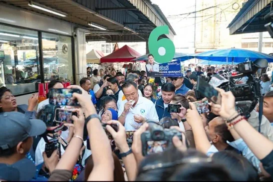 อยุธยา – อนุทิน- ธนาธร เจอกันที่อยุธยา จับมือทักทาย ระหว่างหาเสียงกลางตลาดเจ้าพรหมอยุธยา