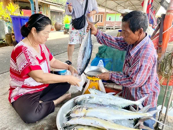 คุณลุงเตี้ยวัย 57 ปี ชาวประมงพื้นบ้าน จึงได้นำเรือออกวางอวนลอยนาน 2 วัน ได้ปลาหลากหลายชนิดรวมกว่า 200 กิโลกรัม อาทิ ปลาโอกิโลละ 60 บาท ปลาปากบางกิโลละ 70 บาท ปลาสระกิโลละ 60 บาท และปลาชนิดอื่นๆอีก เพื่อนำมาจำหน่ายภายในหมู่บ้านในราคากิโลละ 40–80 บาทแล้วแต่ปลาชนิดใดที่ราคาที่บอกไว้เบื้องต้น