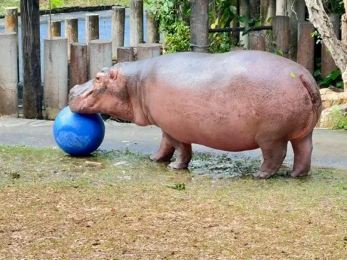 สวนสัตว์เปิดเขาเขียว ชวนลุ้นทุกวันพุธ! ฮิปโปโปเตมัส “ขาหมู” จะเล่นบอลหรือ “อาบน้ำ โชว์ความน่ารัก