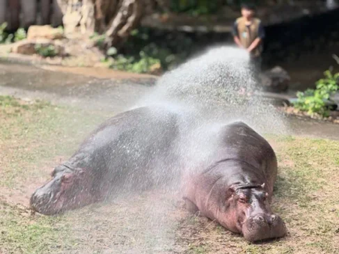 สวนสัตว์เปิดเขาเขียว ชวนลุ้นทุกวันพุธ! ฮิปโปโปเตมัส “ขาหมู” จะเล่นบอลหรือ “อาบน้ำ โชว์ความน่ารัก