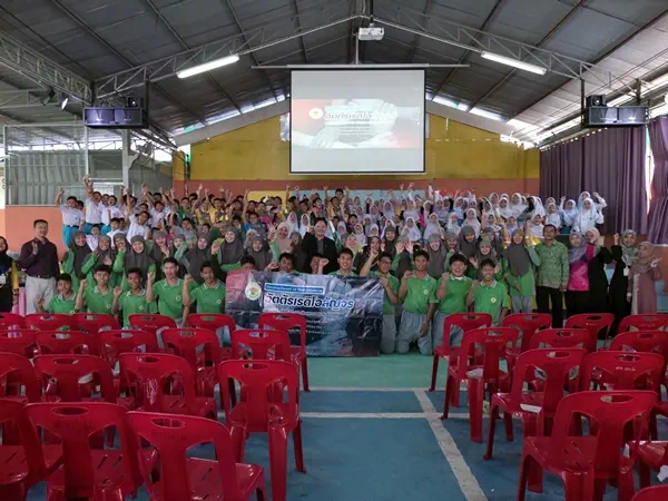 นายสราวุฒิ แจ้งศิริ ผู้อำนวยการโรงเรียนแหลมทองวิทยา ตำบลตันหยงมัส อำเภอระแงะ จังหวัดนราธิวาส ให้การต้อนรับ นางสาวรัชนี บินยูโซ๊ะ หัวหน้าฝ่ายรายการสถานีวิทยุอัตตัรเรดิโอ หัวหน้าโครงการ “โตไปไม่สูบภูมิคุ้มกันเด็กไทยไม่ตกเป็นเหยื่อบุหรี่ไฟฟ้า PROTECT NEW GEN ” อัตตัรเรดีโอสัญจร พร้อมคณะครูและนักเรียนโรงเรียนอัตตัรกียะห์อิสลามียะห์ จำนวน 35 คน ร่วมกันเปิดกิจกรรม “บุหรี่ไฟฟ้าไม่ใช่ของเล่น” เพื่อสร้างความตระหนักรู้เรื่องพิษภัยบุหรี่และบุหรี่ไฟฟ้า ภายใต้โครงการ อัตตัรฯสัญจร โดยกองกิจกรรมจิตอาสาของกลุ่มอัตตัรฯเรดิโอ ของสถาบันการศึกษาโรงเรียนอัตตัรกียะห์อิสลามียะห์ และ
