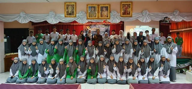 นายสราวุฒิ แจ้งศิริ ผู้อำนวยการโรงเรียนแหลมทองวิทยา ตำบลตันหยงมัส อำเภอระแงะ จังหวัดนราธิวาส ให้การต้อนรับ นางสาวรัชนี บินยูโซ๊ะ หัวหน้าฝ่ายรายการสถานีวิทยุอัตตัรเรดิโอ หัวหน้าโครงการ “โตไปไม่สูบภูมิคุ้มกันเด็กไทยไม่ตกเป็นเหยื่อบุหรี่ไฟฟ้า PROTECT NEW GEN ” อัตตัรเรดีโอสัญจร พร้อมคณะครูและนักเรียนโรงเรียนอัตตัรกียะห์อิสลามียะห์ จำนวน 35 คน ร่วมกันเปิดกิจกรรม “บุหรี่ไฟฟ้าไม่ใช่ของเล่น” เพื่อสร้างความตระหนักรู้เรื่องพิษภัยบุหรี่และบุหรี่ไฟฟ้า ภายใต้โครงการ อัตตัรฯสัญจร โดยกองกิจกรรมจิตอาสาของกลุ่มอัตตัรฯเรดิโอ ของสถาบันการศึกษาโรงเรียนอัตตัรกียะห์อิสลามียะห์ และ