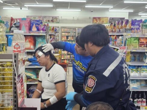 ปทุมธานี-ระทึกเด็ก4 ขวบเผลอบิดคันเร่ง ทำรถจักรยานยนต์พุ่งทะลุประตูกระจกเซเว่นบาดเจ็บทั้งป้าและหลาน