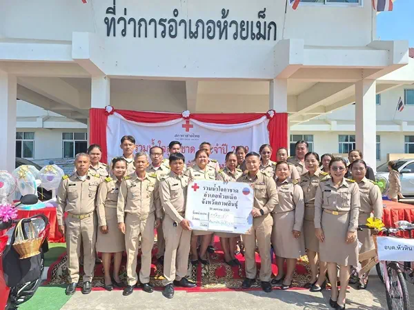 วันที่ 30 มกราคม 69 ที่บริเวณหน้าที่ว่าการ อ.ห้วยเม็ก จ.กาฬสินธุ์ นายยุทธนา คงสมมาตย์ นายอำเภอห้วยเม็ก เป็นประธานรับมอบสิ่งของ “วันรวมน้ำใจสู่กาชาด จ.กาฬสินธุ์ ประจำปี 2569” โดยมีส่วนราชการ รัฐวิสาหกิจ ภาคเอกชน โดยเฉพาะครอบครัวคุ๊ปปี้ นำโดย ดร.ไรเนอร์ คุ๊ปปี้-นางมณีรัตน์ ไชยสีหา สามี-ภรรยา เจ้าของร้านมณีเซ็นเตอร์ และผลิตภัณฑ์น้ำดื่ม “น้ำมณี” ชาวบ้านคำมะโฮ ต.คำเหมือดแก้ว อ.ห้วยเม็ก โดยเปิดรับบริจาคเงินสด และสิ่งของตลอดวัน ได้รับสายธารน้ำใจ จากส่วนราชการและผู้มีจิตอันเป็นกุศล จากทุกภาคส่วนให้การสนับสนุน ทั้งนี้ ได้รับเงินสด สิ่งของเป็นจำนวนมาก นายยุทธนา คงสมมาตย์ นายอำเภอห้วยเม็กกล่าวว่า ตามที่ทาง จ.กาฬสินธุ์ นำโดยนายสุวรรธณ์ เข็มธนเพ็ชร ผวจ.กาฬสินธุุ์ ได้ร่วมกับเหล่ากาชาด จ.กาฬสินธุ์ ส่วนราชการ รัฐวิสาหกิจ พ่อค้า ประชาชน กำหนดจัดงานมหกรรมโปงลาง แพรวา และงานกาชาด จ.กาฬสินธุ์ ประจำปี 69