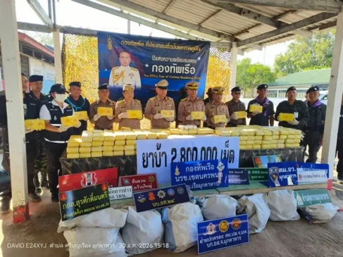 มุกดาหาร -นรข.มุกดาหาร สกัดขบวนการค้ายาข้ามโขง ยึดยาบ้า 2.8 ล้านเม็ด เรือกีบ 1 ลำ คนร้ายโดดน้ำหนีรอด