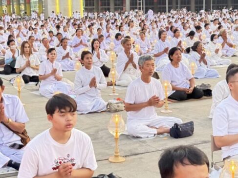 ปทุมธานี-โดรนแปรอักษรและภาพที่เนื่องกับอนุสรณ์สถานทั้ง 7 แห่งส่งท้ายโครงการฯ พระธรรมยาตราพันกว่ารูปจุดประทีปถวายเป็นพุทธบูชา อนุสรณ์สถาน