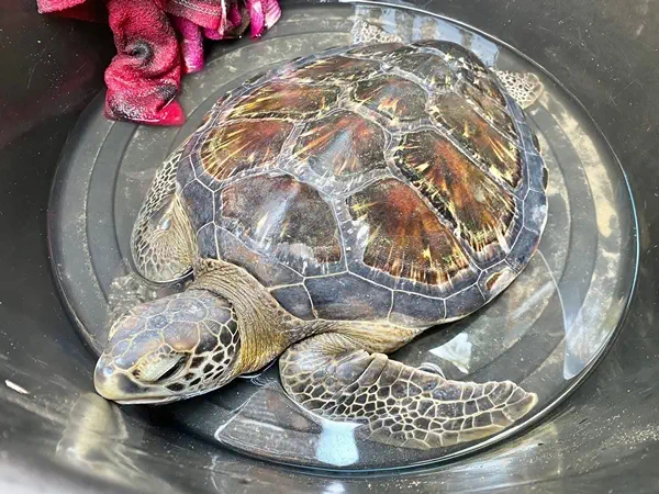เจ้าหน้าที่ด่านตรวจสัตว์ป่าคลองใหญ่และศูนย์ช่วยเหลือสัตว์ทะเลหายาก จ.ระยอง เข้าตรวจสอบ พบเต่าตนุ เคยได้รับการช่วยเหลือมาก่อนและติดไมโครชิพ ขนาดกระดองยาวกว่า 50 ซม. กว้าง 25 ซม. สภาพโดยรวมยังแข็งแรง เบื้องต้นนำส่งตรวจละเอียดที่ ศูนย์ช่วยเหลือสัตว์ทะเลหายาก จ.ระยอง เพื่อหาสาเหตุและดูแลต่อไป