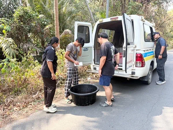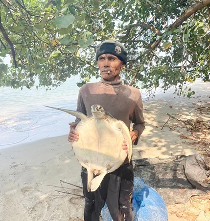 โดยคุณลุงทวีป ขณะกลับมาจากวางลอบปู เห็นเต่ากำลังว่ายน้ำอ่อนแรง จึงรีบเข้าช่วยเหลือไว้ทัน