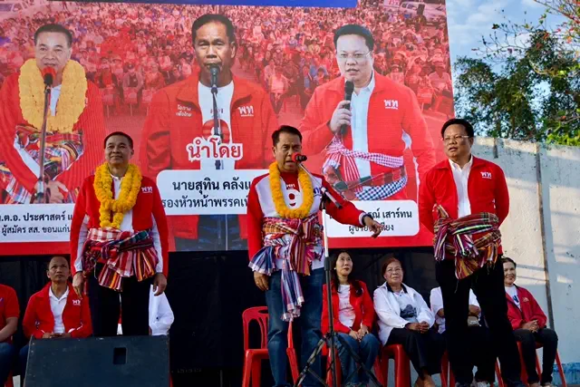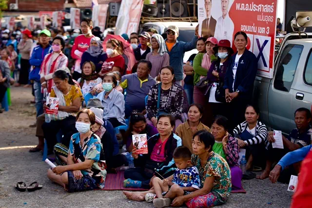 ขอนแก่น-ชาวซำสูงร่วมฟังการปราศรัย “สุทิน คลังแสง” หลังผู้สมัครพรรคเพื่อไทยเบอร์ 3 เขต 3 ลงพื้นที่พบปะอย่างใกล้ชิด