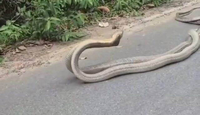 กระบี่-ตื่นตา ชาวบ้านเจอคู่รักงูจงอางพรอดรักกันริมถนน ไม่สนสายตาผู้คน “เราสัญญากันว่าจะรักกันตลอดไปความรักของงูใกล้วันวันวาเลนไทน์”