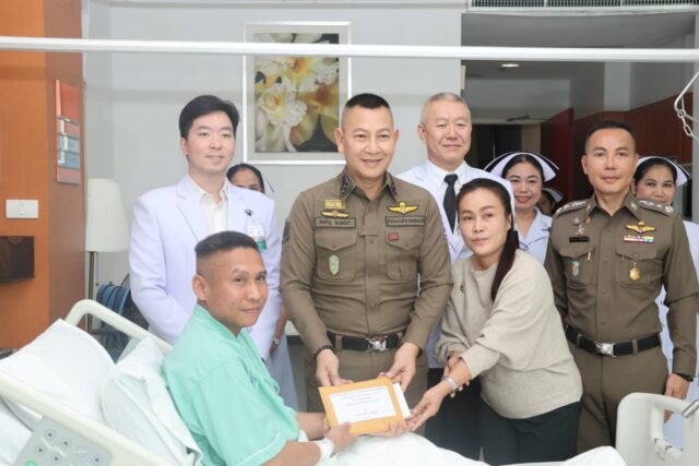 โอกาสนี้ ผบ.ตร.ได้พูดคุยสอบถามอาการและกล่าวให้กำลังใจแก่ ด.ต.จักรพันธ์ฯ และครอบครัว พร้อมทั้งมอบเงินช่วยเหลือและสิ่งของบำรุงขวัญ เพื่อเป็นขวัญและกำลังใจในการปฏิบัติหน้าที่เสียสละเพื่อประเทศชาติ ทั้งนี้ ผบ.ตร. ได้กำชับให้ทีมแพทย์และพยาบาลดูแลรักษาอาการอย่างใกล้ชิดและดีที่สุด พร้อมเน้นย้ำว่า สำนักงานตำรวจแห่งชาติจะดำเนินการดูแลเรื่องสิทธิประโยชน์และสวัสดิการต่างๆ อย่างดีที่สุด