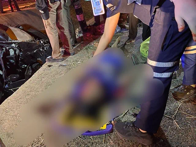 ที่เกิดเหตุเป็นจุดกลับรถตรงร่องกลางถนนพบรถเก๋ง ยี้ห้อ ฮอนด้าซิตี้ สีดำ หมายเลขทะเบียน กน-5270 ปทุมธานี ในสภาพพังยับทั้งคัน ส่วนภายในตัวรถพบผู้เสียชีวิต 1 ราย เป็นชายอายุประมาณ 20-25 ปี เจ้าหน้าที่จึงช่วยกันงัดและนำร่างออกมาจากตัวรถ นอกจากนี้เจ้าหน้าที่ยังพบอุปกรณ์ เช่น ไม้กลอง กลองชุด ซึ่งน่าจะเป็นของผู้ตายตกอยู่ในรถและผู้ตายน่าจะมีอาชีพเป็นนักดนตรี ตรวจสอบในตัวยังไม่มีเอกสารระบุตัวตนว่าเป็นใคร เจ้าหน้าที่จึงได้นำร่างไปเก็บไว้ที่โรงพยาบาลร้อยเอ็ด เพื่อรอติดต่อญาติต่อไป