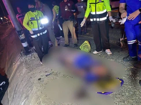 ร้อยเอ็ด…หนุ่มมือกลองควบเก๋งเสียหลักหมุนชนเสาไฟตกร่องกลางถนนดับคาที่