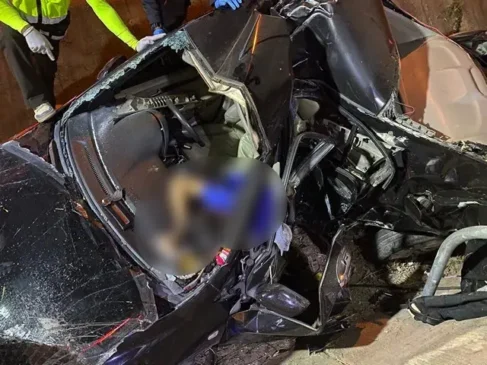 ร้อยเอ็ด…หนุ่มมือกลองควบเก๋งเสียหลักหมุนชนเสาไฟตกร่องกลางถนนดับคาที่