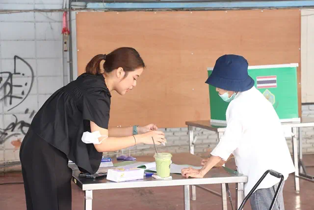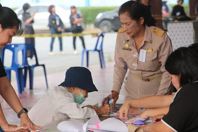 อ่างทอง-ภาพรวมผู้ใช้สิทธิเลือกตั้ง ช่วงเช้าคึกคัก แม้บางหน่วยยังบางตา พบผู้สูงอายุหย่อนบัตรผิดหีบ 1 ราย