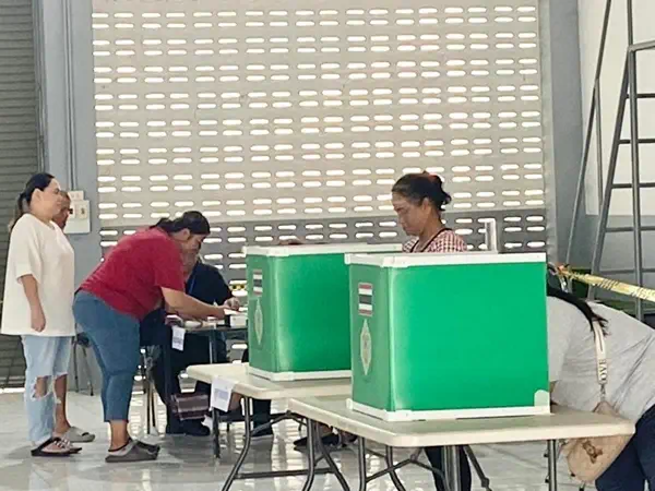 ตราด บรรยากาศการเลือกตั้งสมาชิกสภาผู้แทนราษฎร และบัตรออกเสียง ประชามติ ของเขตเลือกตั้งในพื้นที่อําเภอคลองใหญ่ จ.ตราด ประชาชนทยอยมาใช้สิทธิแต่ละหน่วยเลือกตั้งด้านนายอําเภอคลองใหญ่ออกตรวจการเลือกตั้งประจำพื้นที่แต่ละหน่วยเดินทางตรวจเยี่ยมเจ้าหน้าที่ประจำหน่วยเลือกตั้ง