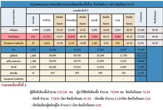พังงา-ภูมิใจไทยคว้าชัย สส.ทั้ง2เขตเลือกตั้ง ส่วน ปชป.นำโด่งปาร์ตี้ลิสต์ ส่วนประชามติไม่เห็นชอบ