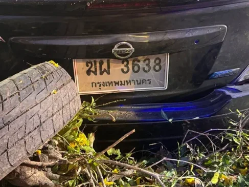 นครนายก เก๋งเสียหลักหลุดโค้งชนเสาไฟเครื่องยนต์กระเด็นคนขับเสียชีวิตคาที่ในซากรถ