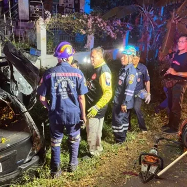 นครนายก เก๋งเสียหลักหลุดโค้งชนเสาไฟเครื่องยนต์กระเด็นคนขับเสียชีวิตคาที่ในซากรถ