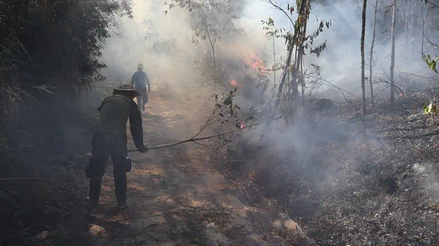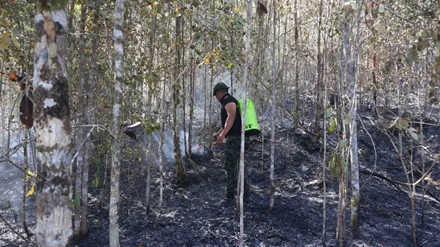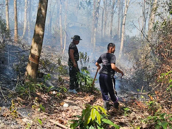 เบตง ไฟไหม้ป่าสวนยางพาราติดชายแดนไทยมาเลเซีย เสียหายกว่า 50 ไร่ เจ้าหน้าที่ ตชด. ทหาร อส. ชาวบ้านช่วยกันดับไม่ให้ลุกลามข้ามเข้าประเทศมาเลเซีย