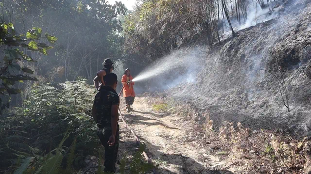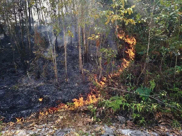แต่ก็มีเจ้าหน้าที่ ตชด.ชุดเฝ้าตรวจชายแดน4406 ทหาร กองร้อยป้องกันชายแดนที่1 อส.ชุดคุ้มครองตำบลธารน้ำทิพย์ ผู้ใหญ่บ้าน ชาวบ้าน ประมาณ 30 คน อยู่บนยอดเขาช่วยกันใช้กิ่งไม้ ใบไม้ดับไฟ และทำแนวป้องกันไม่ให้ไฟลุกลามเข้าไปยังป่าฝั่งประเทศมาเลเซีย ทางเจ้าหน้าที่ดับเพลิง จึงหาแหล่งน้ำตามหุบเขา แล้วใช้เครื่องสูบน้ำ ดูดน้ำเพื่อฉีดดับไฟอีกทางหนึ่ง ใช้เวลาประมาณ 4 ชม. ก็สามารถควบคุมไฟไม่ให้ลุกลามเข้าไปยังประเทศมาเลเซีย ไฟได้เผาต้นไม้ ใบหญ้า ต้นยางพารา มีพื้นที่ได้รับความเสียหายประมาณกว่า 50 ไร่ อีกประมาณ 100-150 เมตร ไฟก็จะลุกลามเข้าไปยังพื้นที่ของประเทศมาเลเซีย