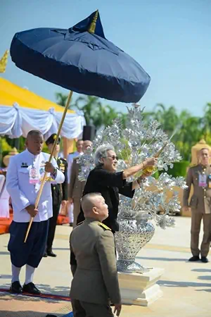 การนี้ ทรงจุดธูปเทียนเครื่องนมัสการบูชาพระพุทธนวราชบพิตร พระสงฆ์เจริญพระพุทธมนต์ จบแล้ว เสด็จไปยังมณฑลพิธีถวายผ้าป่า ทรงรับผ้าไตรแล้วทรงกล่าวคำถวายผ้าป่า และทรงวางผ้าไตรไว้บนพานแว่นฟ้า พระศรีวชิรสุธี เจ้าอาวาสวัดทิพย์สุคนธาราม พิจารณาผ้าป่า แล้วเสด็จเข้าพลับพลาพิธี เพื่อทรงประเคนจตุปัจจัยไทยธรรม ทรงหลั่งทักษิโณทก พระสงฆ์ทั้งนั้นถวายอนุโมทนา จากนั้น พระราชทานของที่ระลึกแก่ผู้มีจิตศรัทธา บริจาคเงินสมทบทุนมูลนิธิ ฯ จำนวน 119 คน แล้วจึงเสด็จพระราชดำเนินไปยังพระพุทธเมตตาประชาไทยไตรโลกนาถคันธารราฐอนุสรณ์ ทรงพระสุหร่าย ทรงวางพวงมาลัย และทรงจุดธูปเทียนเครื่องนมัสการท้ายที่นั่ง และทรงบำรุงดินที่ต้นพระศรีมหาโพธิ์ เป็นอันเสร็จพิธี