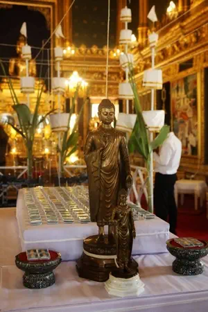 การนี้ ทรงจุดธูปเทียนเครื่องนมัสการบูชาพระพุทธนวราชบพิตร พระสงฆ์เจริญพระพุทธมนต์ จบแล้ว เสด็จไปยังมณฑลพิธีถวายผ้าป่า ทรงรับผ้าไตรแล้วทรงกล่าวคำถวายผ้าป่า และทรงวางผ้าไตรไว้บนพานแว่นฟ้า พระศรีวชิรสุธี เจ้าอาวาสวัดทิพย์สุคนธาราม พิจารณาผ้าป่า แล้วเสด็จเข้าพลับพลาพิธี เพื่อทรงประเคนจตุปัจจัยไทยธรรม ทรงหลั่งทักษิโณทก พระสงฆ์ทั้งนั้นถวายอนุโมทนา จากนั้น พระราชทานของที่ระลึกแก่ผู้มีจิตศรัทธา บริจาคเงินสมทบทุนมูลนิธิ ฯ จำนวน 119 คน แล้วจึงเสด็จพระราชดำเนินไปยังพระพุทธเมตตาประชาไทยไตรโลกนาถคันธารราฐอนุสรณ์ ทรงพระสุหร่าย ทรงวางพวงมาลัย และทรงจุดธูปเทียนเครื่องนมัสการท้ายที่นั่ง และทรงบำรุงดินที่ต้นพระศรีมหาโพธิ์ เป็นอันเสร็จพิธี