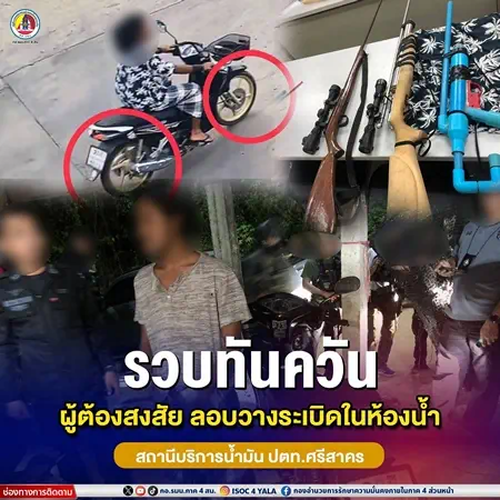 นราธิวาส – รวบทันควัน ผู้ต้องสงสัยลอบวางระเบิดในห้องน้ำสถานีบริการน้ำมัน ปตท. ศรีสาคร