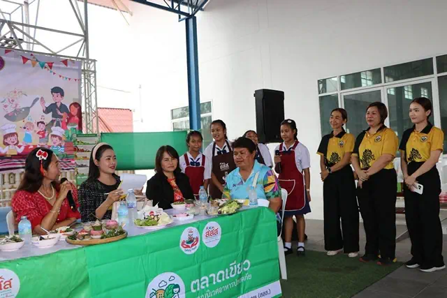 เมื่อวันที่ 13 กุมภาพันธ์ 2569 ณ.โดมใหญ่ข้างศาลาใหม่ วัดสระบัว อ.ธัญบุรี จ.ปทุมธานี ดร.ณัจยา แก้วนุ้ย (ดร.จิ) ผู้จัดการโครงการพัฒนาและขยายผลระบบอาหารเพื่อสุขภาวะตลอดห่วงโซ่ในโรงเรียนและชุมชน ในจังหวัด สงขลา ปทุมธานี สุพรรณบุรี พัทลุง และนครปฐม สนับสนุนโดย สำนักงานกองทุนสนับสนุนการสร้างเสริมสุขภาพ (สสส.) ร่วมกับสมาคมการค้าธุรกิจอาหาร มูลนิธิเครือข่ายพลังสังคม และหน่วยงานภาครัฐ ของจังหวัดปทุมธานี ได้จัดกิจกรรมเปิดตลาดเขียวชุมชนในจังหวัดปทุมธานี อบรมให้ความรอบรู้ด้านอาหารและโภชนาการ เพื่อยกระดับความปลอดภัยทางอาหาร ส่งเสริม สนับสนุนผลผลิตทางการเกษตรปลอดสารพิษ สร้างเมนูอาหารปลอดภัยเพื่อสุขภาพ รณรงค์ลดความเสี่ยงโรค NCDs ลด หวาน มัน เค็ม ในการจัดกิจกรรมตลาดเขียวในชุมชน ครั้งนี้
