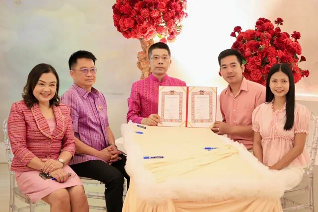 โดยมีนายกเทศมนตรีเมืองร้อยเอ็ด นายอำเภอเมืองร้อยเอ็ด พร้อมด้วยญาติและครอบครัวของคู่รัก ร่วมเป็นสักขีพยานให้แก่คู่รักจำนวน 31 คู่ ท่ามกลางบรรยากาศสีชมพูที่อบอวลไปด้วยความรักและความอบอุ่นความเสมอภาคและเท่าเทียม
